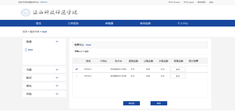 进入如下界面后,根据学费项目显示的应缴金额,来填写你实际要缴费的金额,然后点击“去结算”。最后点击确认支付,即可完成微信缴费。